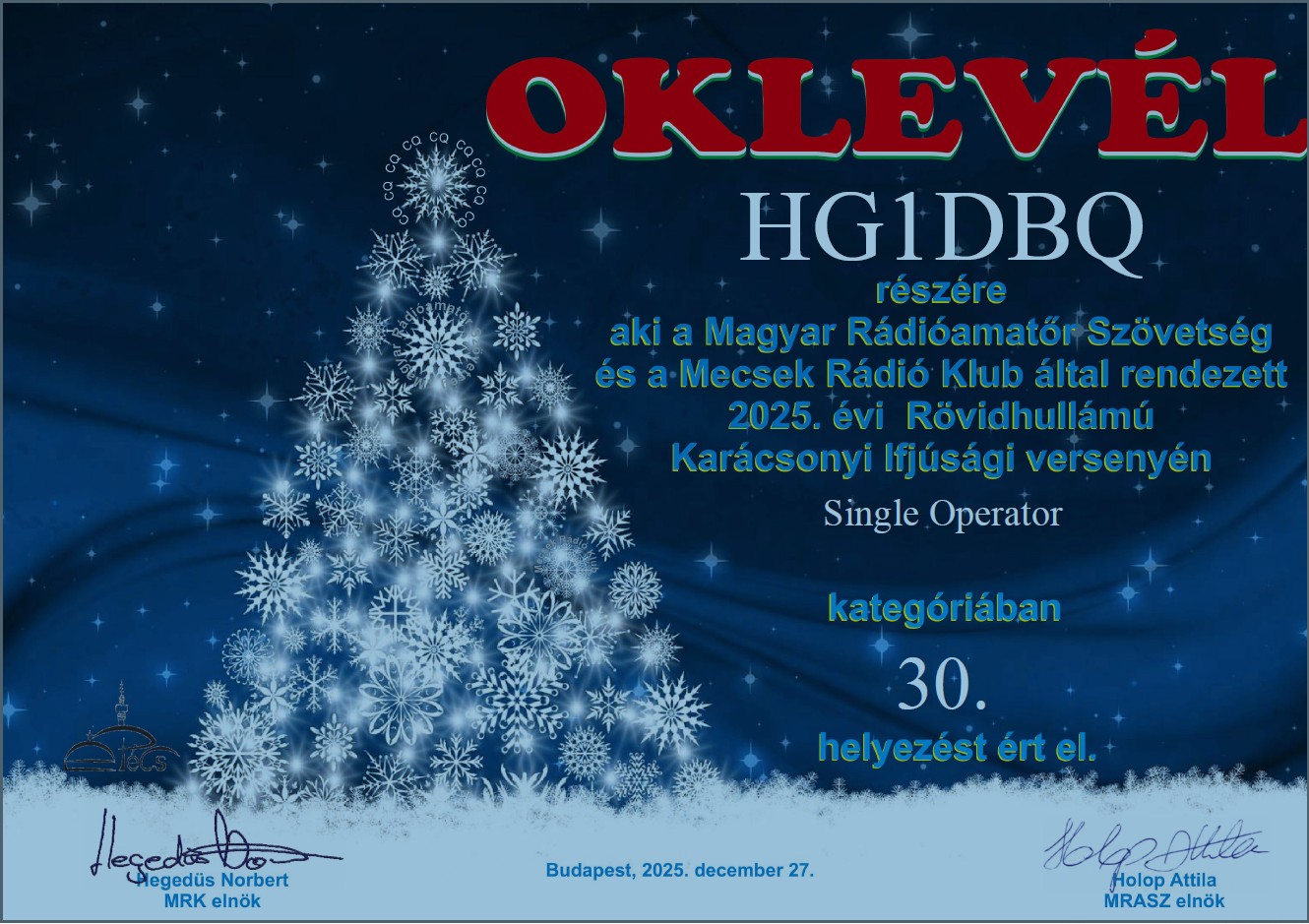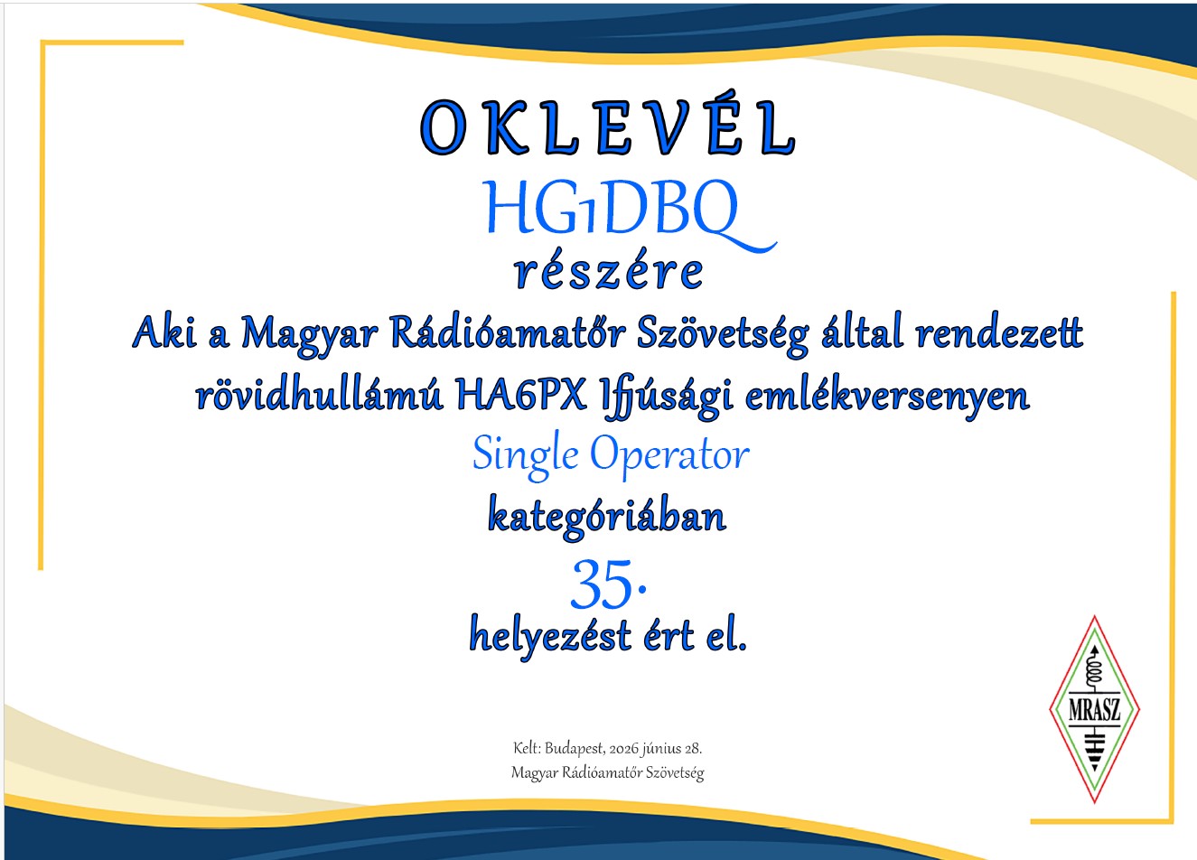Molnár Csaba, HA6PX MRASZ elnök emlékverseny, 2025. május